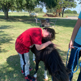 Dancer was happy to get treats & love! "Can I kiss her?" "I wanna hug her!"